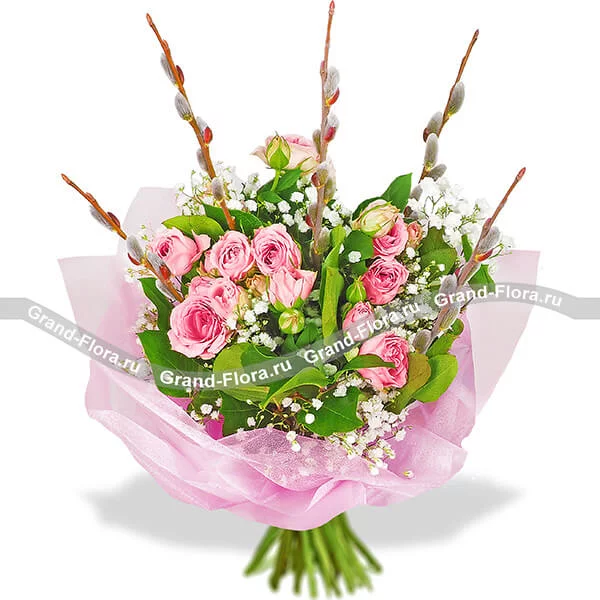 Вербное воскресенье - букет из кустовых роз